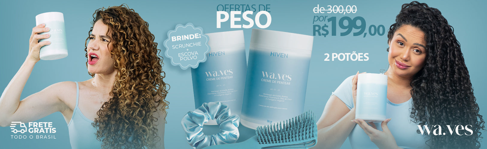 Combo Hiven: Creme Waves 1KG + Creme 500ML + Escova Polvo (BRINDE)